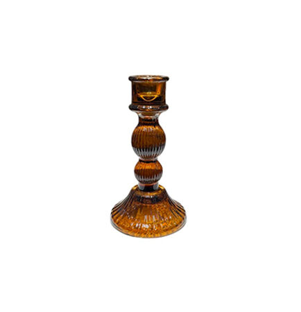 - Glazen kandelaar bruin voor zowel een stompkaars als gewone kaars