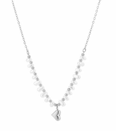 • Zilverkleurige ketting met hart, stainless steel (40 + 5 cm)