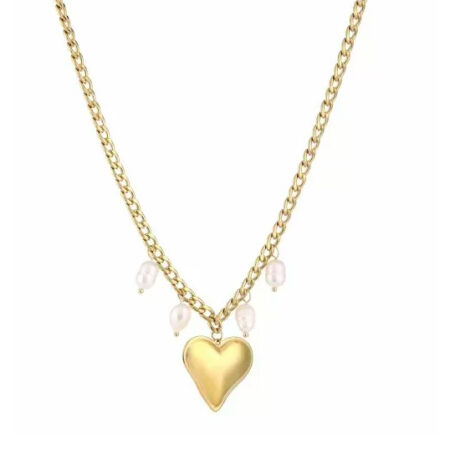 • Goudkleurige ketting met harten pareltjes Snelle weergave