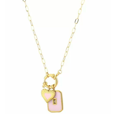 • Goudkleurige ketting met kruisje en hartje, stainless steel