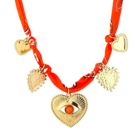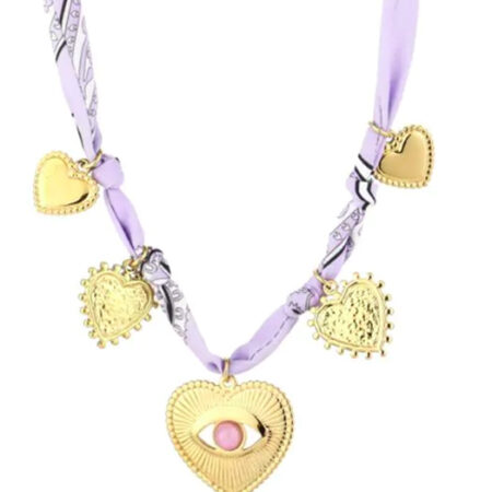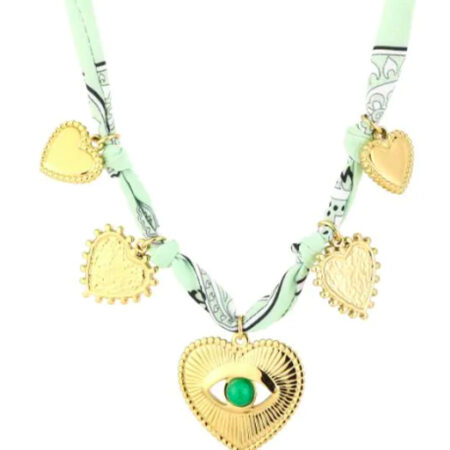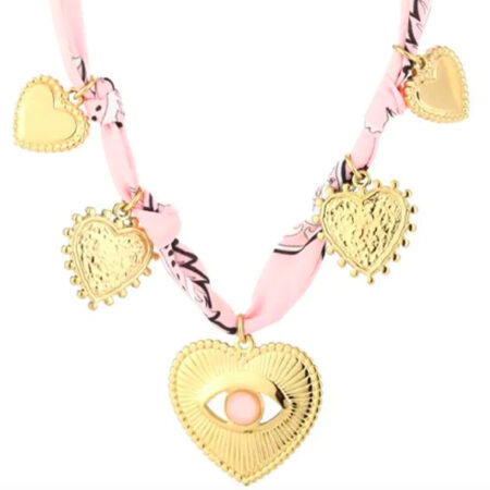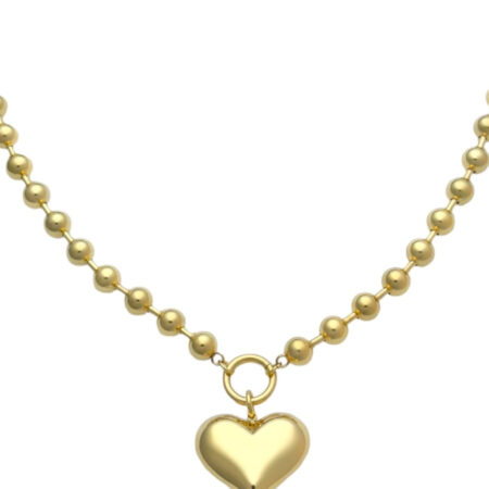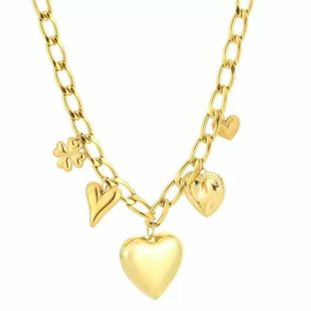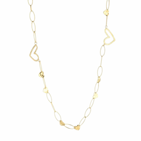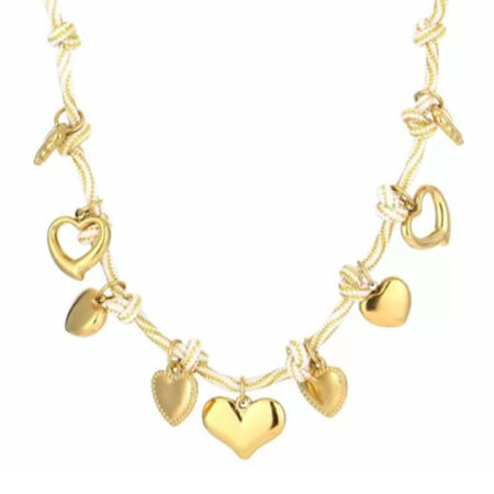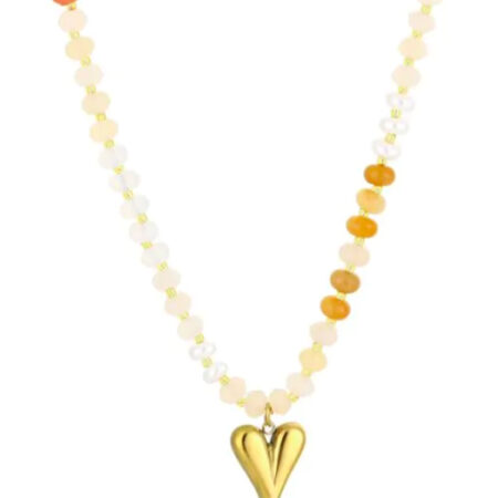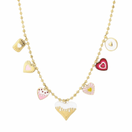 • Goudkleurig kettinkje met kraaltjes en hartjes