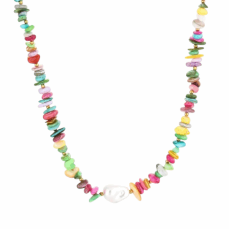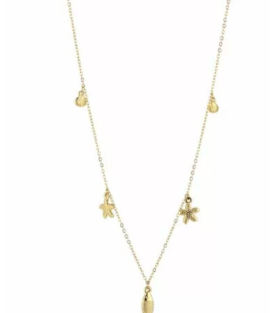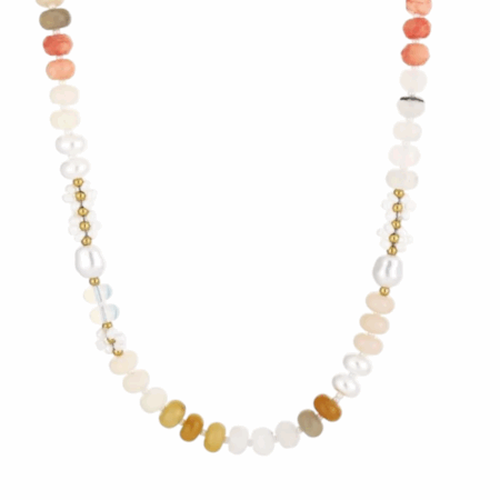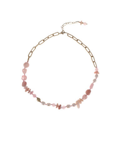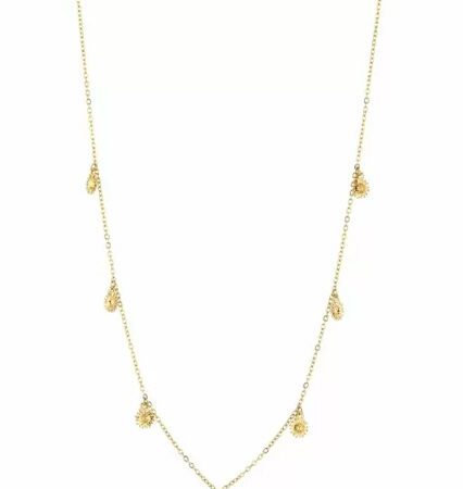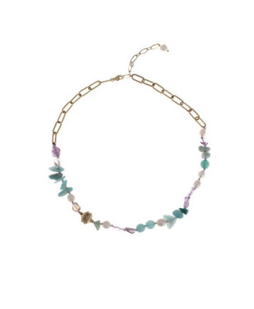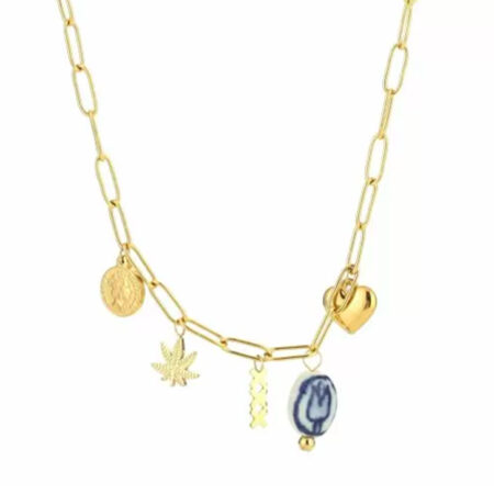 • Goudkleurig kettinkje met kraaltjes en bedeltjes