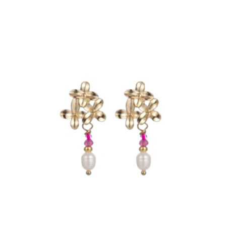 - Goudkleurige statement oorbellen met kralen, stainless steel