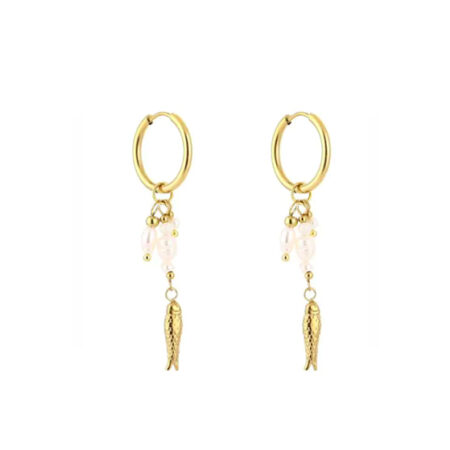 - Goudkleurige kleine oorbelletjes met bedeltje, stainless steel