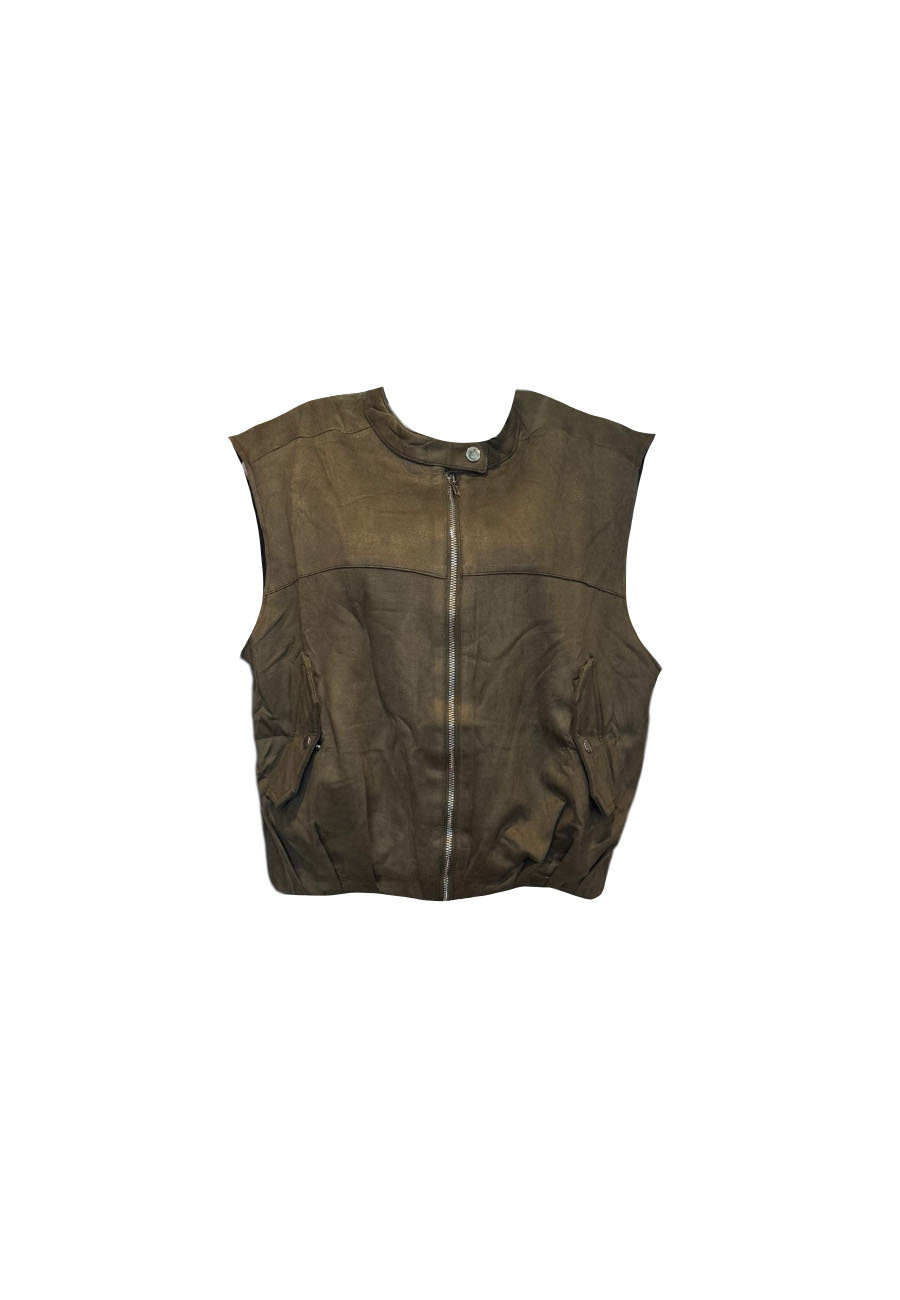 Beige mêlee vestje (geen wol) met gouden knoopjes, 1 maat valt als xs t/m l
