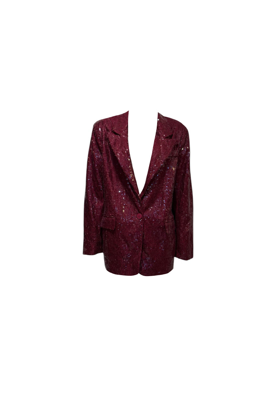Bordeaux blazer met palletten met 1 knoopsluiting (ook leuk te dragen als pak met bijpassende broek)