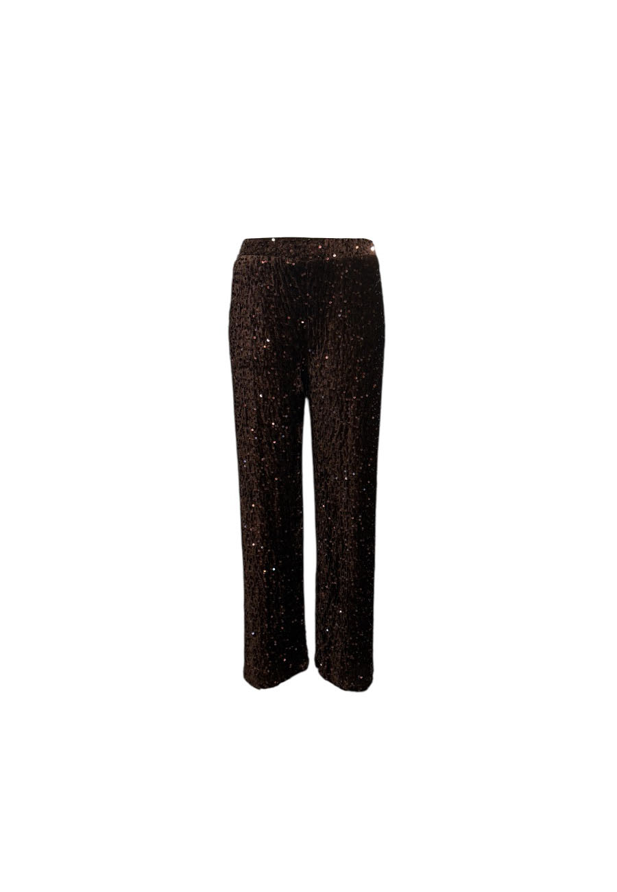 Bruine velvet pailletten broek met elastische tailleband, 1 maat valt als xs t/m l (ook leuk te dragen als pak met bijpassende top)