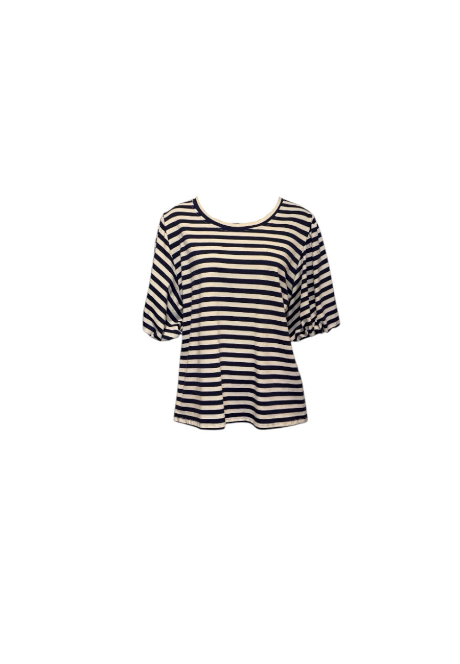 Donkerblauw/ecru gestreept shirt met pofmouwen