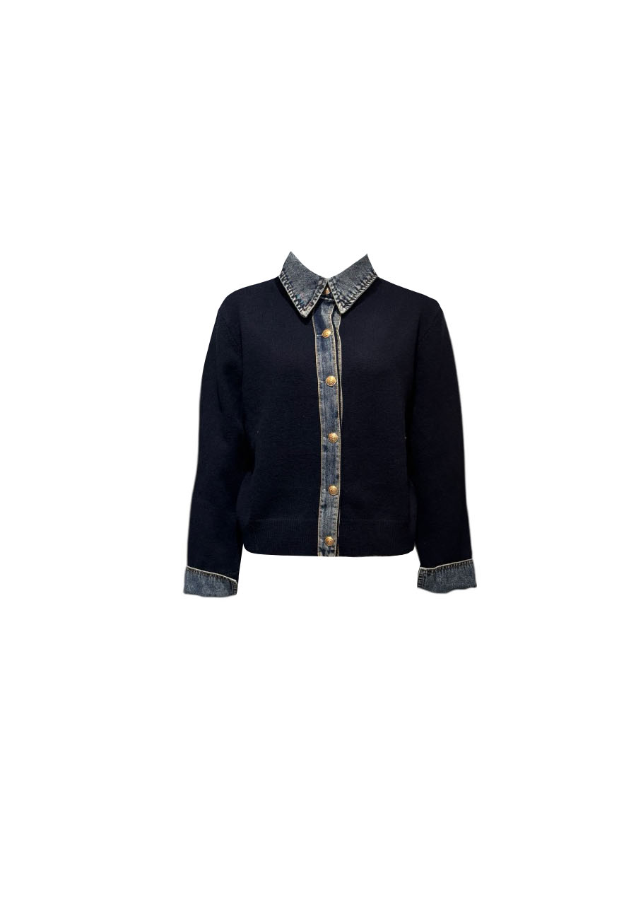 Donkerblauw luxe vest/jasje met jeans accent, 1 maat valt als xs t/m l