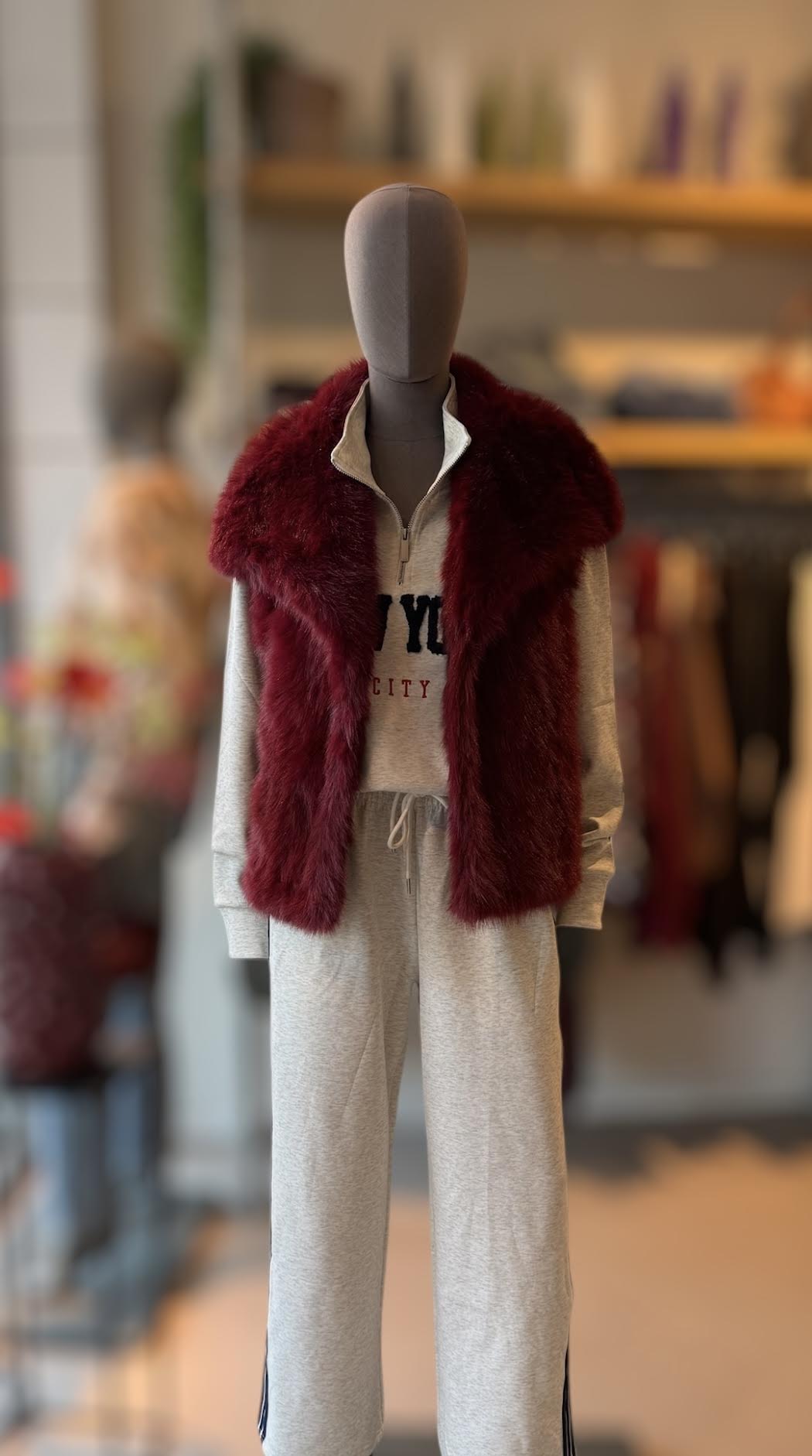 Fake fur oversized gilet bordeaux met drukknopen, 1 maat valt als s t/m l