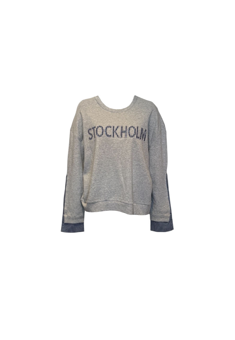 Grijze sweater met ruiten blouse detail, 1 maat valt als xs t/m l