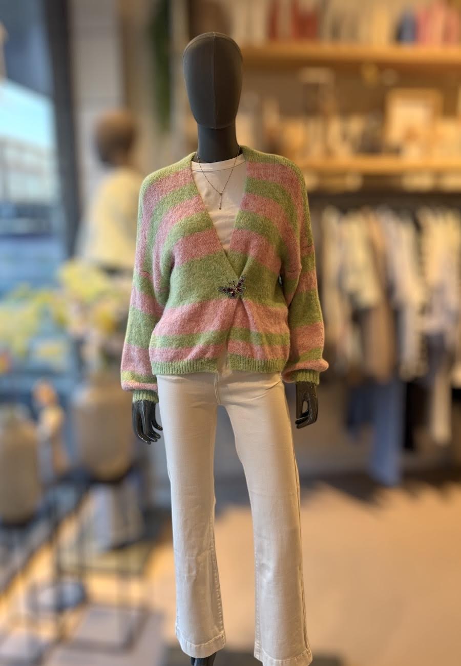 Groen/roze gestreept vest