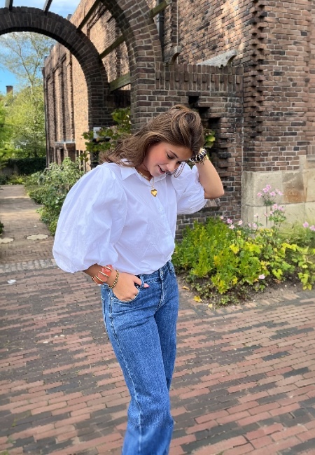 Indigo full stretch wide leg jeans low waist (ons model heeft maat 36 en draagt hier een S)