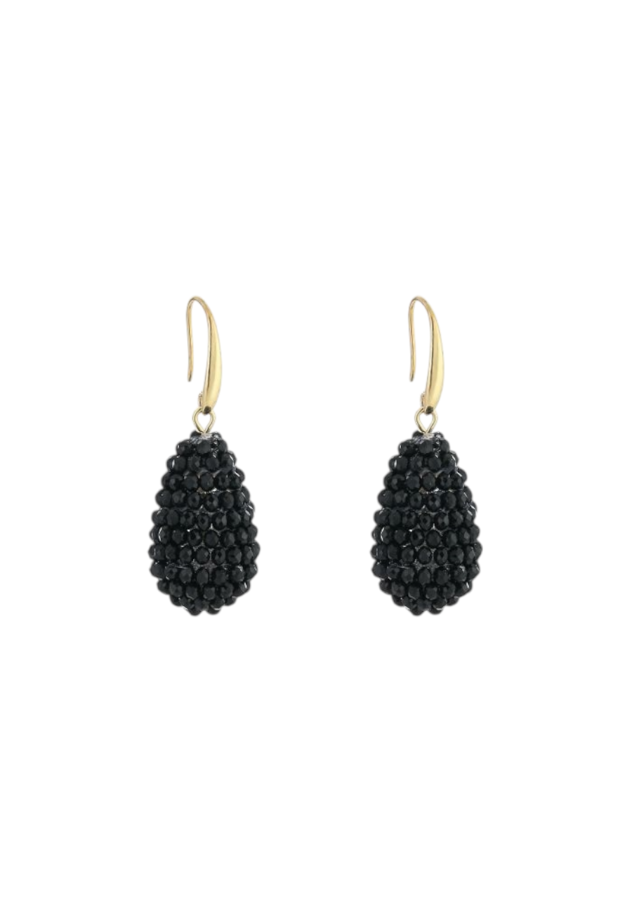 Kegeltjes oorbellen met kraaltjes, zwart
