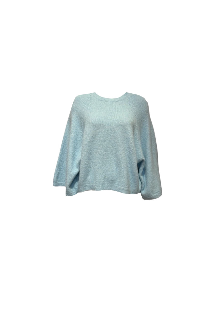 Lichtblauwe basic trui met 3/4 uitlopende mouwen (viscose/polyamide/wol), 1 maat valt als xs t/m l