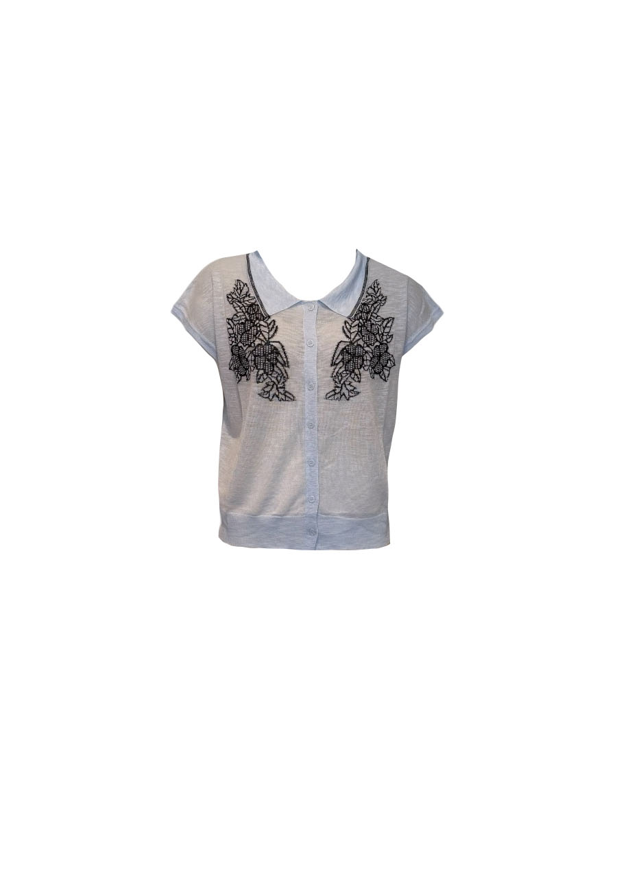 Lichtgeel linnen look vestje (viscose) met borduursels, valt als xs t/m l