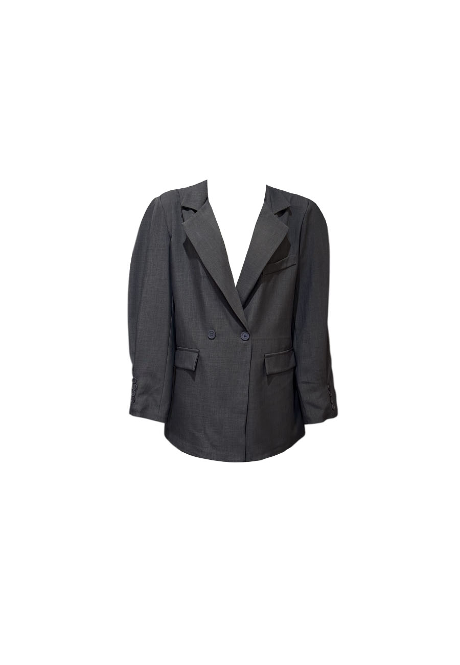 Lichtgrijze oversized blazer met bijpassende ceintuur, plooi bij de manchetten met knopen en plooien bij de schouders, 1 maat valt als s t/m l