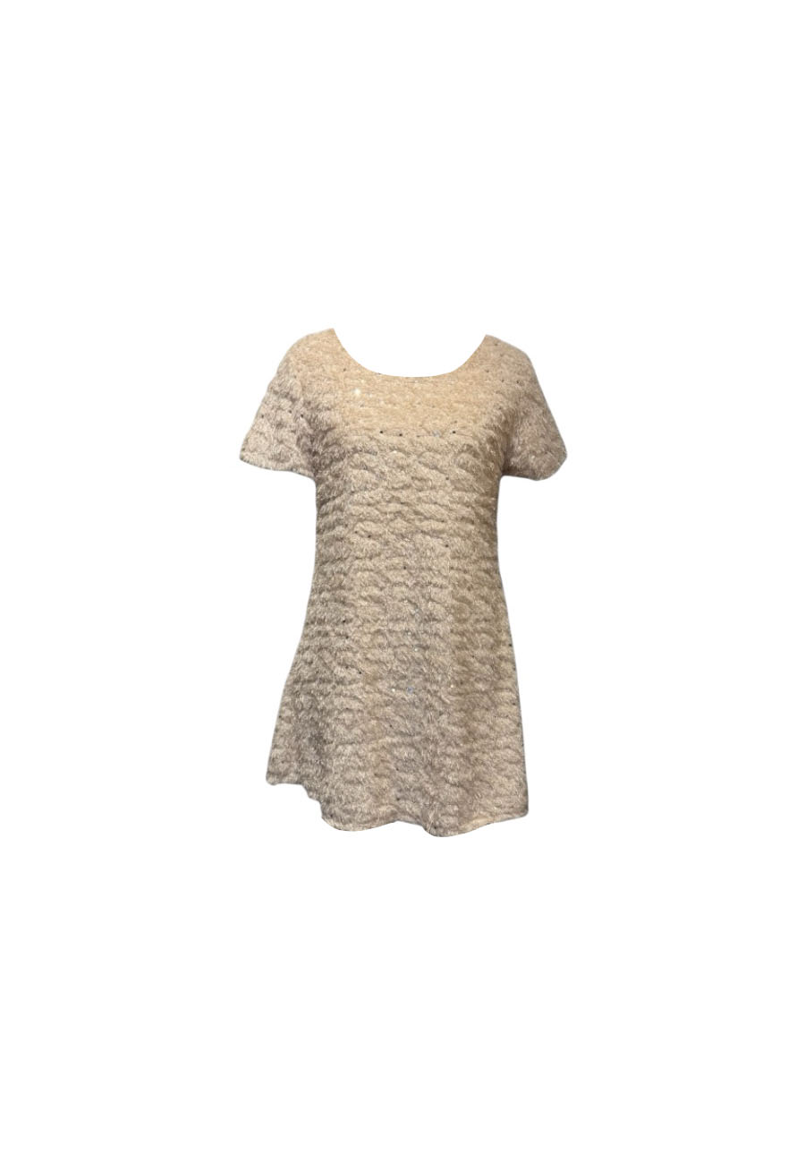off white  fluffy A-lijn jurkje met pailletten, 1 maat valt als xs t/m l