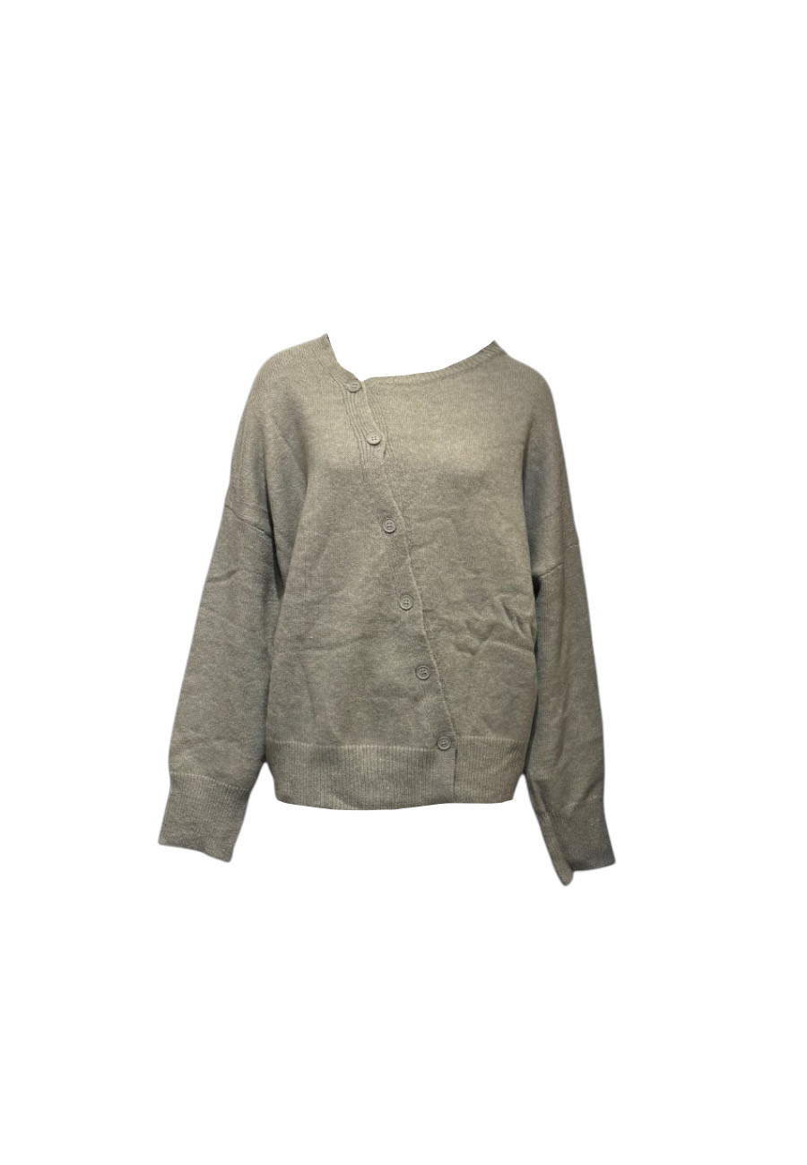Olijfgroene mêlee trui met asymmetrische sluiting op voorpand