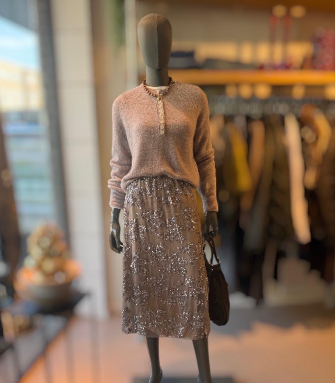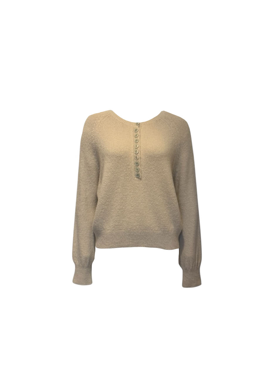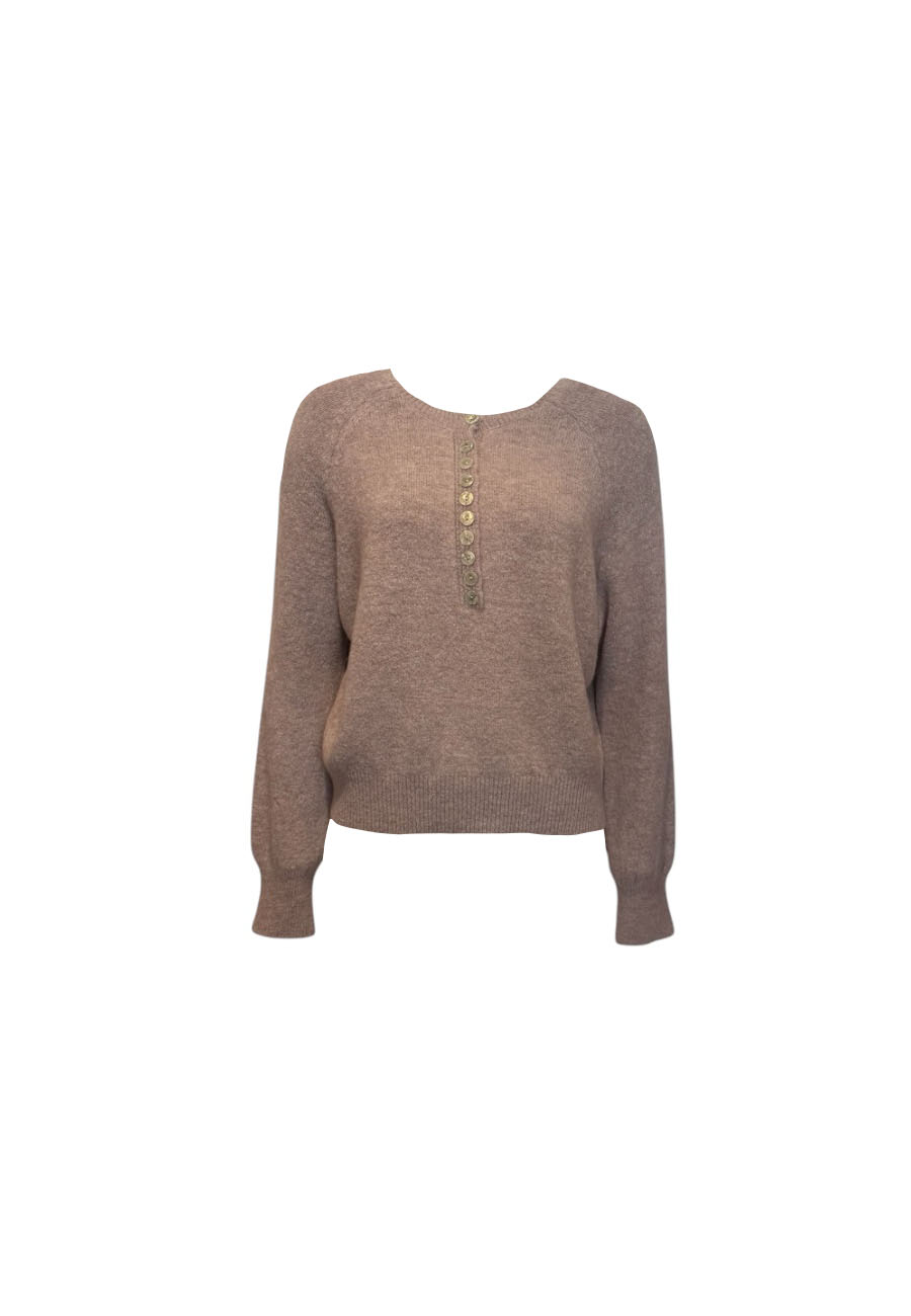 Poederroze trui (baby alpaca/acryl/merino wol/elastan) met knoopjes, 1 maat valt als xs t/m l