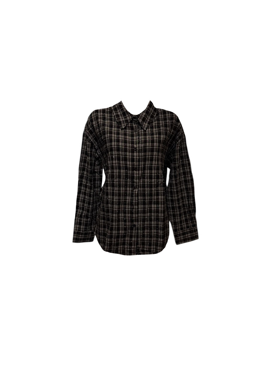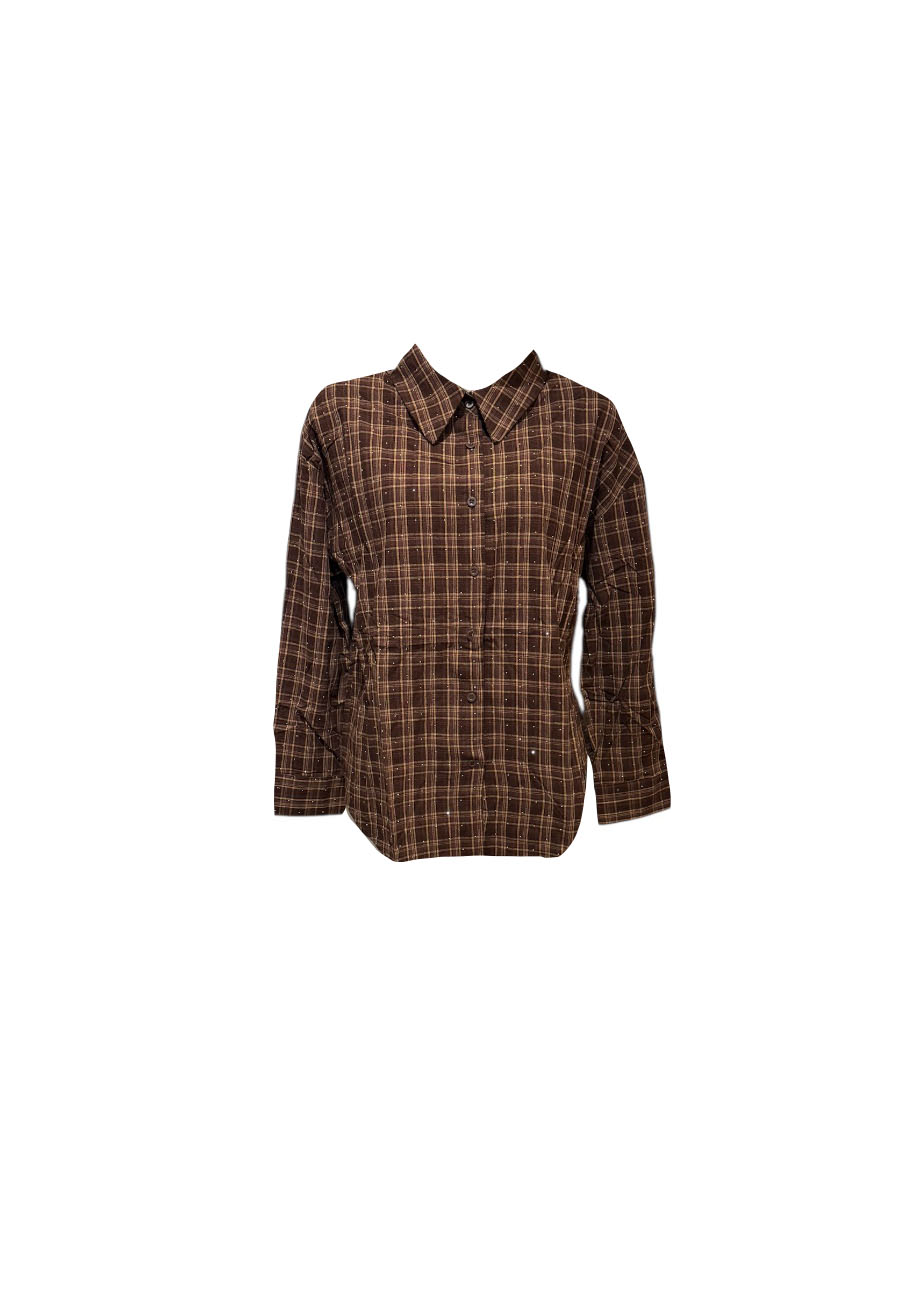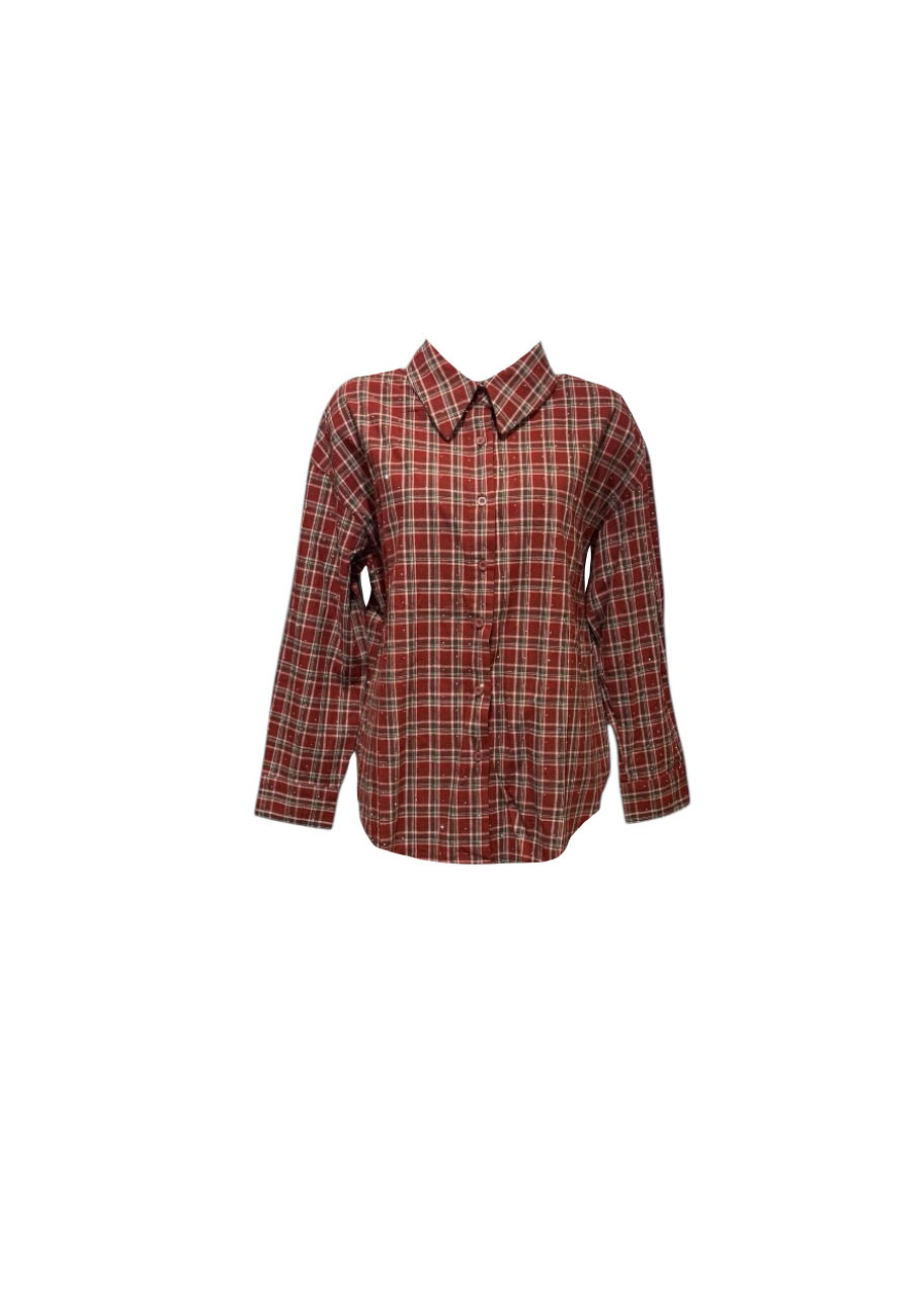 Rode geruite blouse (katoen) met kleine zilverkleurige steentjes