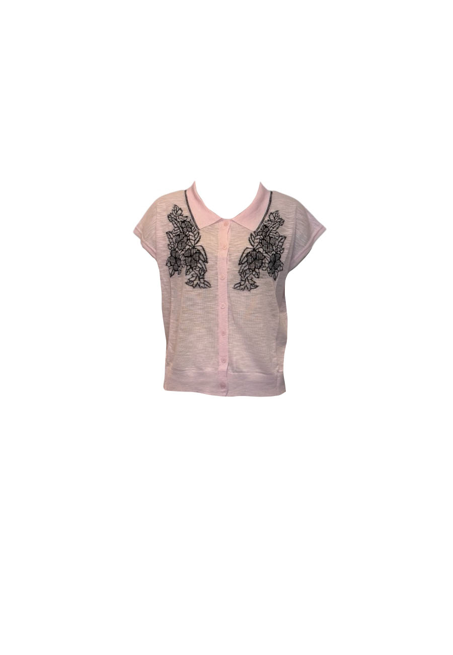 Roze linnen look vestje (viscose) met borduursels en kraagje, 1 maat valt als xs t/m l