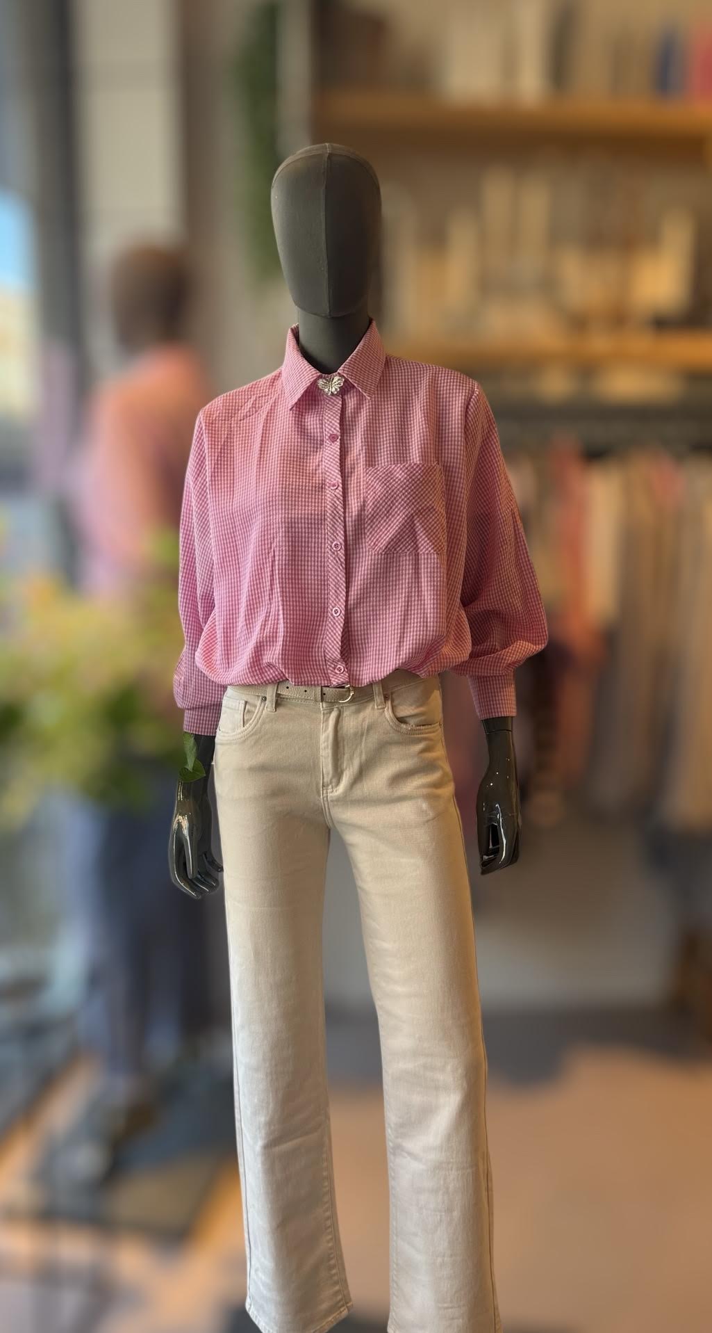 Roze/wit ruiten cropped blouse
