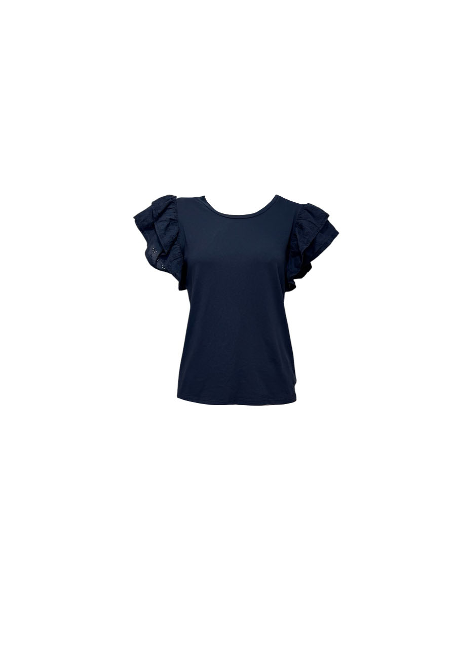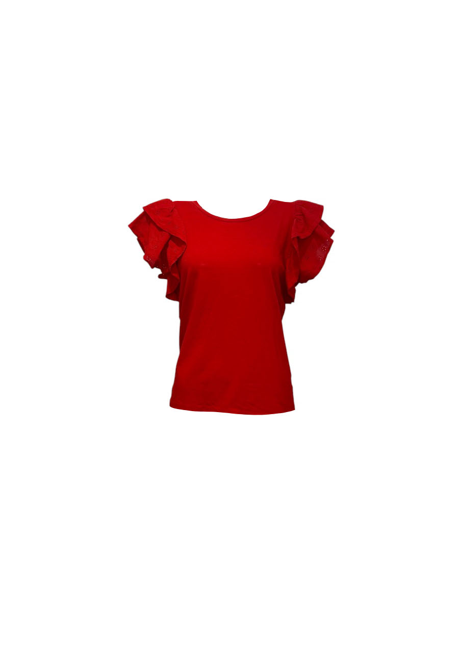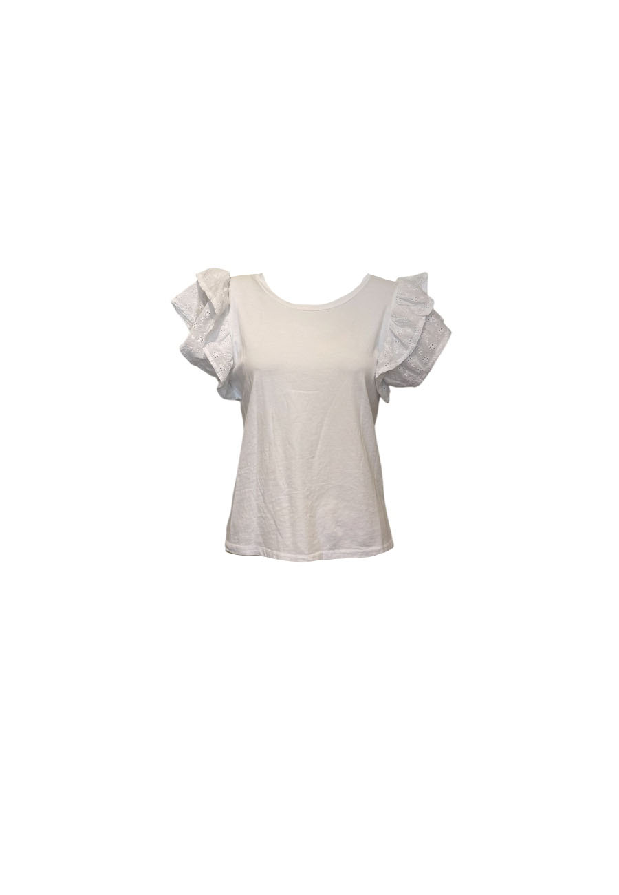 Wit shirt met broderie mouwtjes (katoen), 1 maat valt als xs t/m l