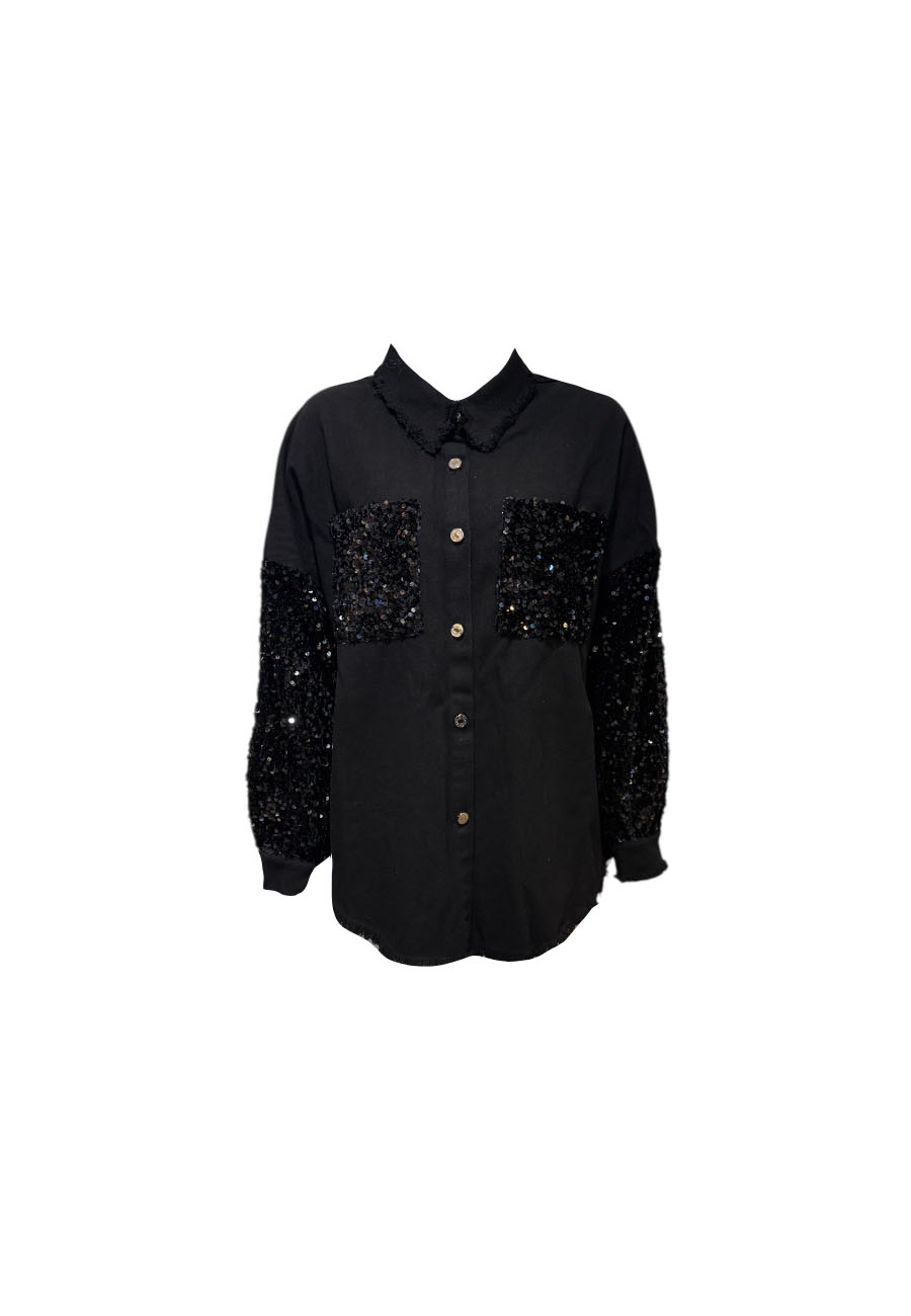 Zwarte stoere jeansblouse met palletten